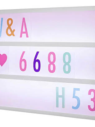 Caja de luz publicitaria cuenta con letras de colores , figuras y emoticones a colores, cinematográfica USB con letras reemplazables. Expresa y ilumina libremente tu mensaje a comunicar de forma divertida en cualquier lugar que deseas. Cuenta con un cable USB para dar energía al letrero y un botón para prender y apagar el equipo. Además es muy fácil intercambiar las letras , cuenta el abecedario completo, numeración de 1 a 9 , símbolos , emoticones y figuras.