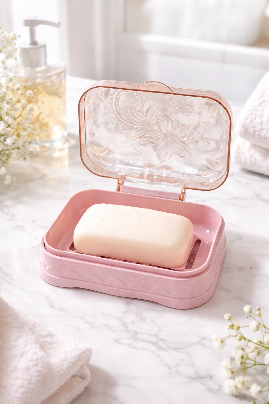 Esta jabonera con tapa y drenaje evita que el jabón quede mojado y se derrita, ya que permite que el agua escurra fácilmente. Mantiene el jabón seco, limpio y sin mal olor por humedad. Además, ayuda a mantener el lavadero ordenado y el baño libre de suciedad, dándole un mejor aspecto y más higiene todos los días.