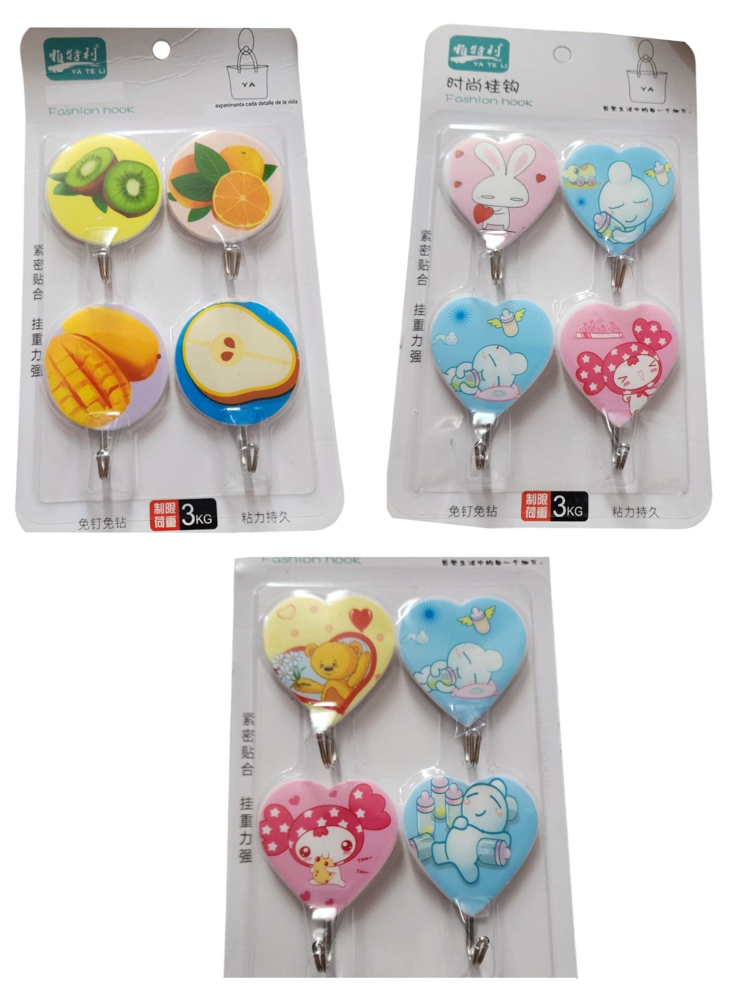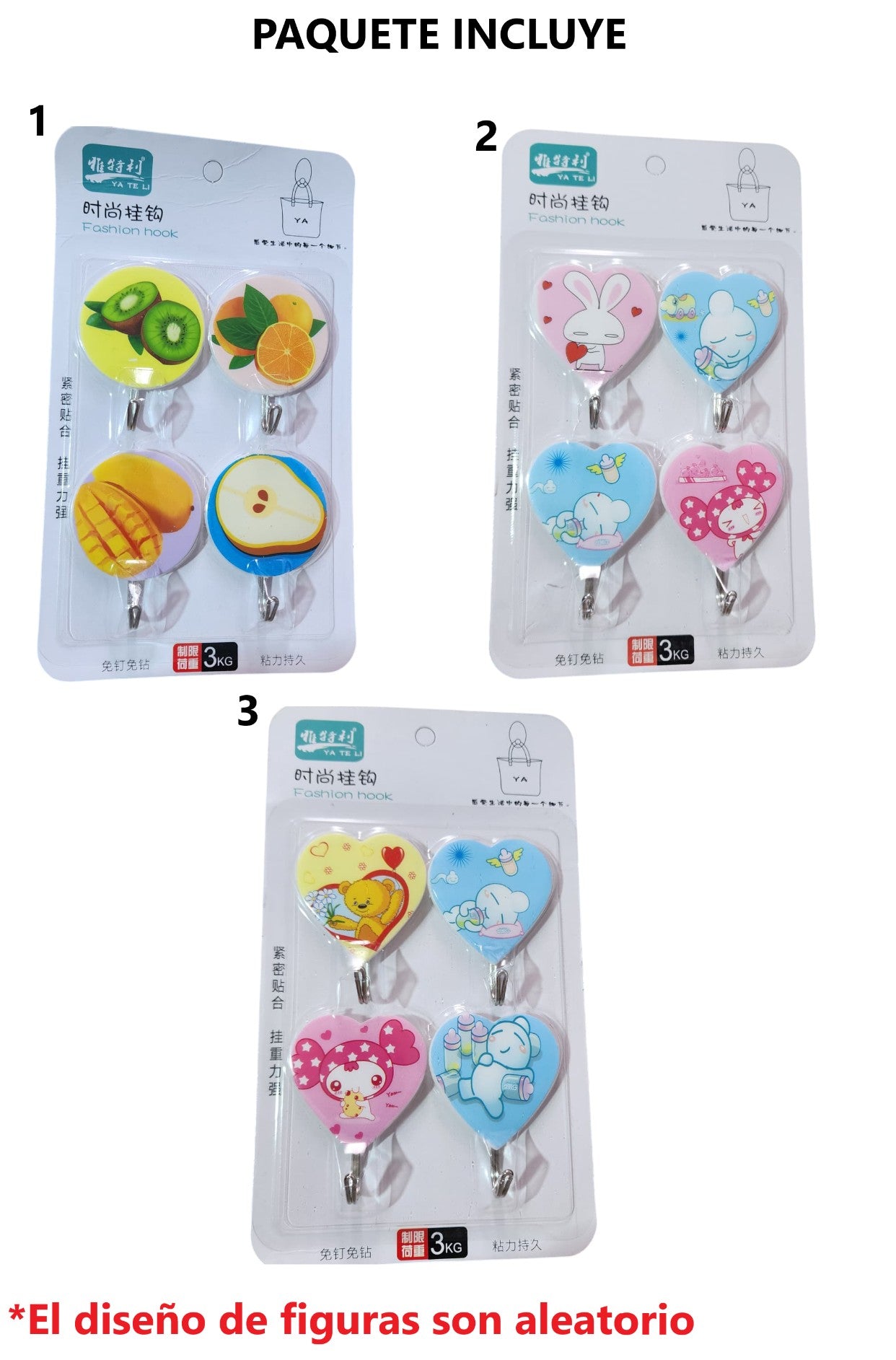 3 paquetes de Ganchos perchas con pegamento - diseño aleatorio
