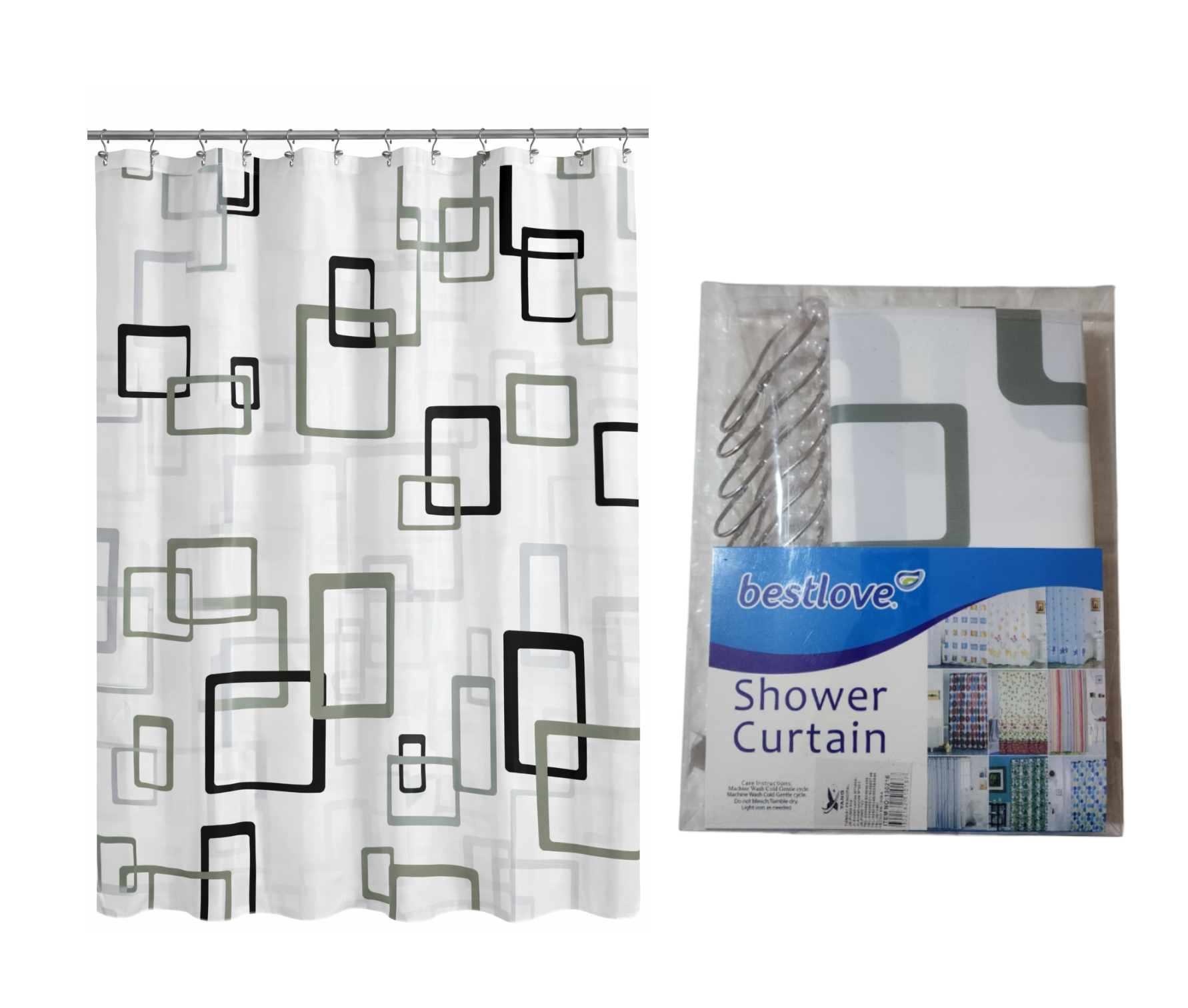 ✅ 1 Cortina de ducha de 180 x 180 cm ✅ 12 ganchos listos para instalar