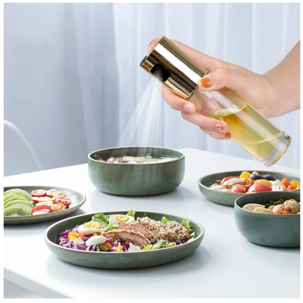 Spray de aceite de oliva Con el Rociador Spray podrás llevar tus deliciosas comidas a su máximo esplendor. Úsalo sin problemas con aceite, aceite de oliva, vinagre y demás condimentos líquidos, puede reutilizarlo porque el envase es de vidrio