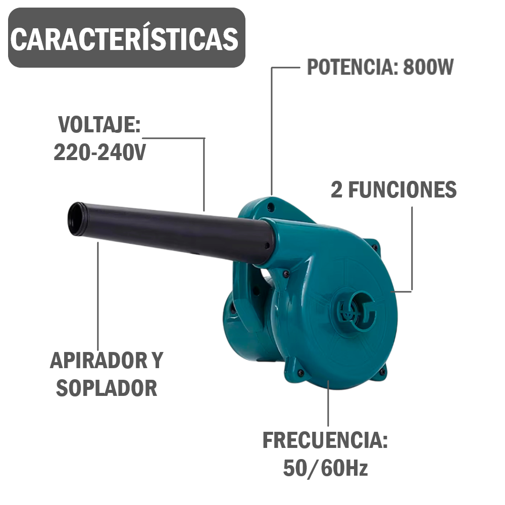 Potente Soplador y Aspirador de aire eléctrica 800 watts